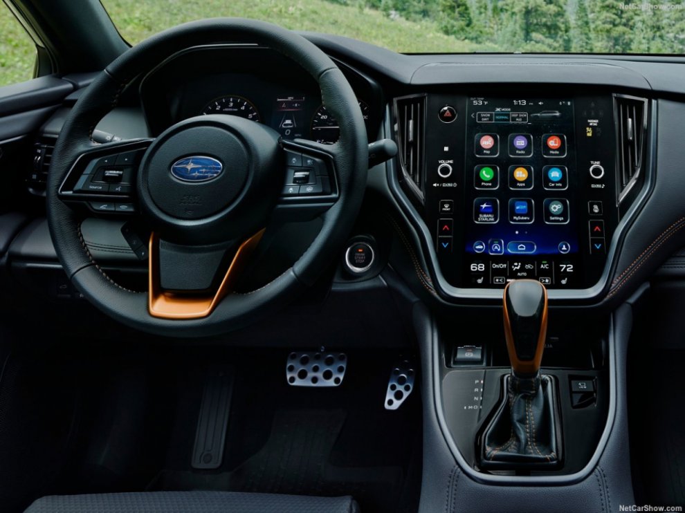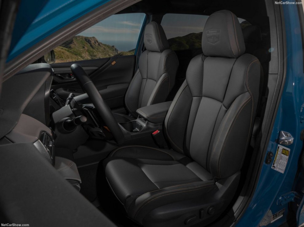 В салоне спортивные кресла с отделкой элементами, содержащими лого Wilderness, 11.6-дюймовый дисплей мультимедийной установки SUBARU STARLINK и блок активной безопасности EyeSight Driver Assist. Универсал пятиместный как был и был и в стандартном варианте. Специально для версии Wilderness информацию, выводимую на экран мультимедиа дополнили креномером с индикатором критических углов.