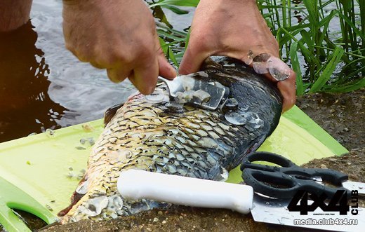Чистим карпа. Если рыбные рецепты хоть немного увлекают вас и вам хочется их повторять, очень рекомендую купить хорошую, лучше японскую, рыбочистку – процесс чистки сразу переходит в разряд удовольствия.