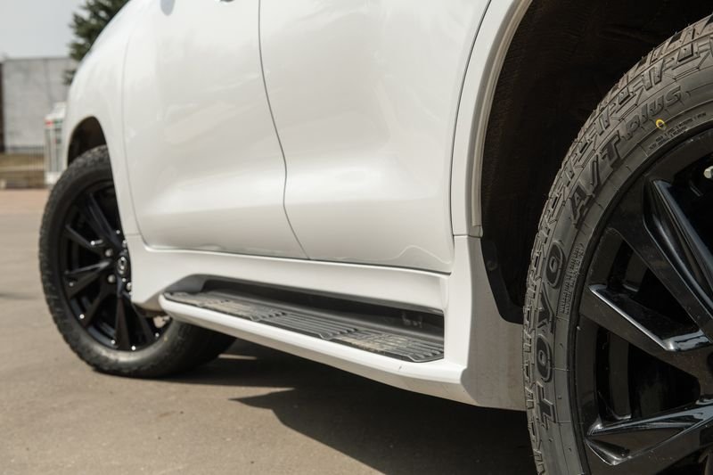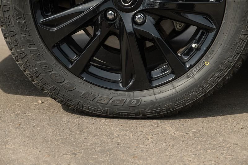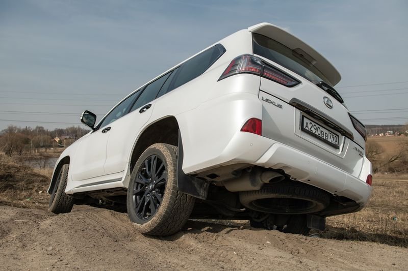 Статусный Lexus LX 450D Black Vision, ценой около девяти миллионов рублей без «допов» – классический внедорожник с прочной рамой, неразрезным задним мостом, большим 4.5-литровым турбодизелем мощностью 272 л. с., шестиступенчатым автоматом, двухступенчатой раздаткой с понижающей передачей, гидропневматической подвеской и целым набором вспомогательной электроники. Правда всё это внедорожное богатство почти бесполезно без подходящих шин, но Open Country A/T Plus 275/50 R21 – точь-в-точь штатный размер нашего Lexus.