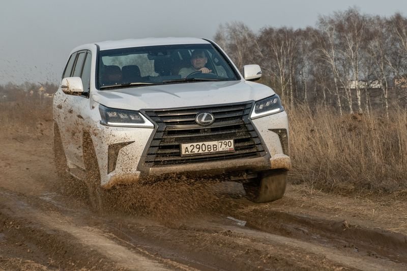 Одна из причин – отсутствие подходящих шин. Найти универсальные All Terrain для машин типа Lexus LX 450D со штатными дисками 21 дюйм – задача весьма непростая. На рынке больших АТ и МТ почти нет, но мы всё-таки кое-что нашли – очень активная японская марка Toyo Tires не так давно начала их регулярные поставки в нашу страну. Поэтому мы переобули Lexus в Toyo Open Country A/T Plus и поехали кататься. Причём, не только по асфальту.