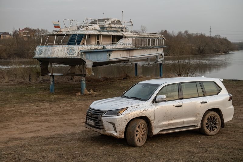 С ровной федеральной трассы мы съехали на знакомый постапокалиптический грейдер, состоящий из битого кирпича, кусков старого асфальта и мусора. У Lexus энергоёмкая подвеска и на высокопрофильных шинах по такой дороге можно валить под сотню. Но и наши низкопрофильные Open Country оказались на удивление комфортными, на 50-70 км/ч не возникало ощущения, что позвоночник вот-вот пробьёт потолок, как это часто бывает с шинами подобного профиля.
