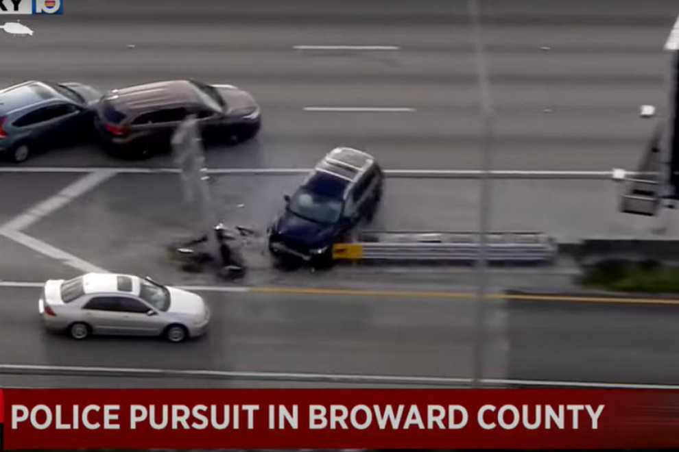 По словам пресс-секретаря полиции Форт-Лодердейла Кейси Лайнинг, всё началось после того, как полицейские приняли сообщение об ограблении дома на северо-восточной 28-й авеню. Пятеро подозреваемых пытались сбежать, угнав машину, и полиция пустилась в погоню. С самого начала это было очень опасное приключение: подозреваемые сбили велосипедиста, который, к счастью, получил лишь незначительные травмы, и выехали на автостраду. В ролике видны их хаотичные перестроения, в плотном утреннем трафике.