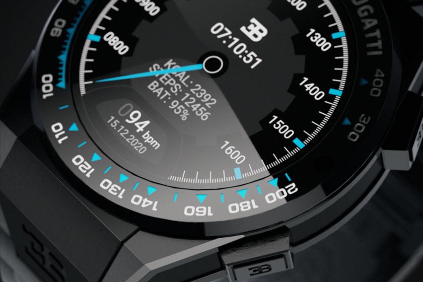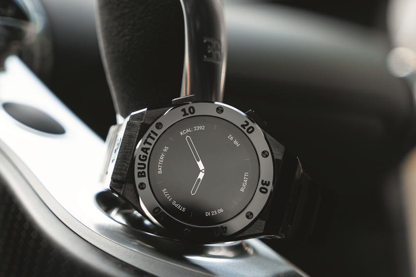 Ну а поскольку эти часы предназначены для клиентов Bugatti, то и внимание к деталям находится на высочайшем уровне. Можно заказать специальный ремешок из каучука или титана, можно сделать керамическое обрамление, работа над которым занимает около двадцати дней... Наконец, несмотря на качественный светодиодный сенсорный экран (390 x 390 пикселей), Bugatti обещает до двух недель автономной работы, в то время как большинство других умных часов приходится заряжать чуть ли не ежедневно.