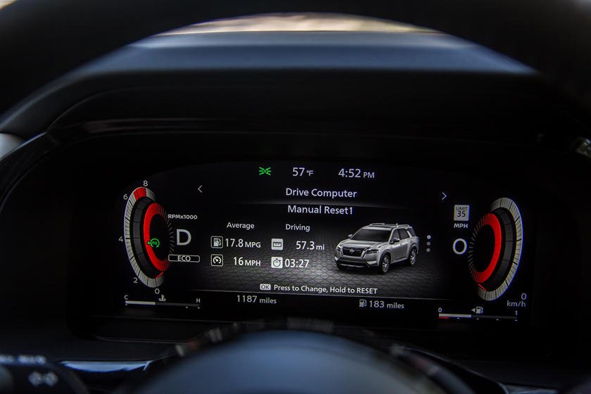 3.5-литровый V6 нового Pathfinder выдаёт те же 284 л. с. и 351 Нм крутящего момента, что и на предыдущем поколении. Однако теперь он получает большую свободу, благодаря девятиступенчатой коробке передач. Привод на передние колёса является стандартной конфигурацией, но доступна и абсолютно новая интеллектуальная система 4WD, в комплекте с вискомуфтой. Расход топлива оценивается производителем в 10,5-11 л на 100 км в смешанном цикле как для переднеприводных, так и для полноприводных моделей. Эти цифры выгодно отличаются от корейских KIA Mohave и Hyundai Palisade, но немного превышают показатели Toyota Highlander в переднеприводной версии. При этом, в её полноприводном варианте, они сопоставимы.