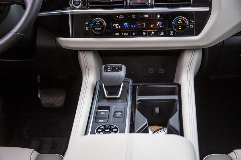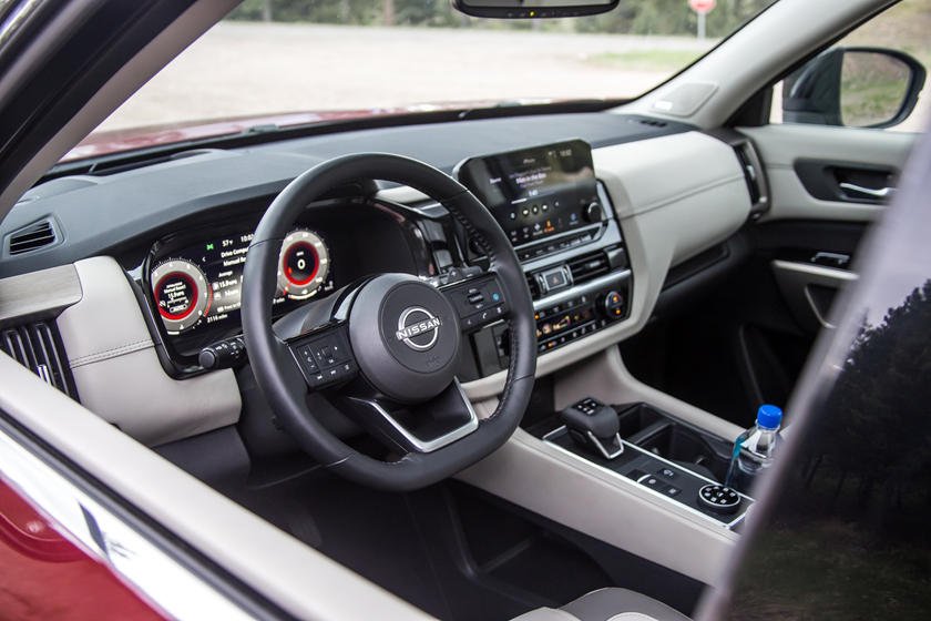 Если новая трансмиссия и дизайн экстерьера – значительный шаг вперёд, то интерьер – гигантский скачок. Салон стал современным и похожим на салон пикапа, подчеркивая, что новый Pathfinder это кроссовер в самом прямом смысле слова. Интерьер отлично смотрится и наполнен практичными деталями. Теперь здесь больше ниш и мест хранения, включая 13,4-литровый бокс в центральном подлокотнике, доступный водителю и переднему пассажиру. Кроме того, в салоне в общей сложности 16 подстаканников.