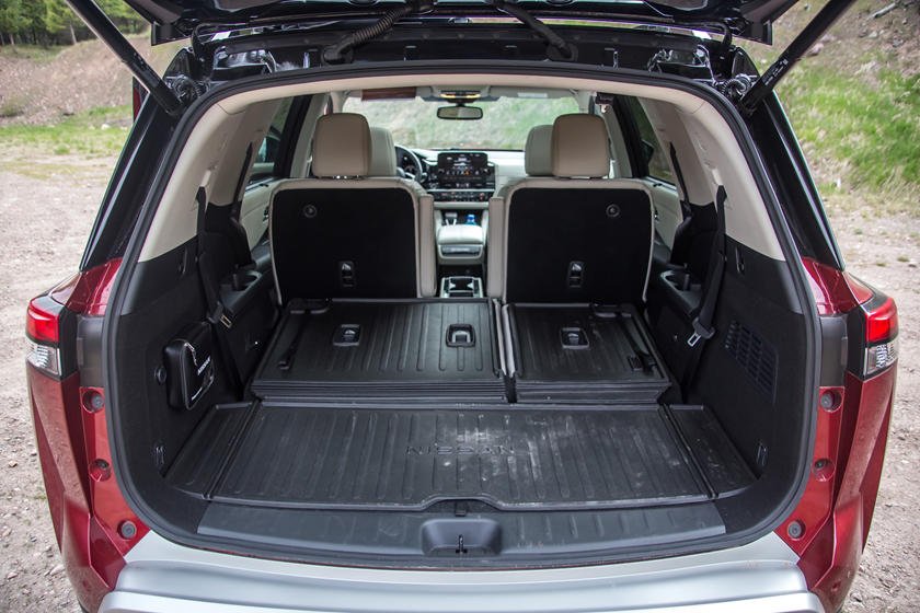 Новый Pathfinder стал короче, но шире и имеет общий внутренний объём 4 660 л (по сравнению с 4 360 л предыдущей модели). Дополнительная ширина означает, что сложив все сиденья вы сможете загрузить фанерные листы шириной метр двадцать, а в багажнике достаточно места, чтобы перевезти шесть чемоданов, сложенных в две стопки. Кстати, под полом грузового отсека находится ещё одно багажное отделение объёмом 54 литра.
