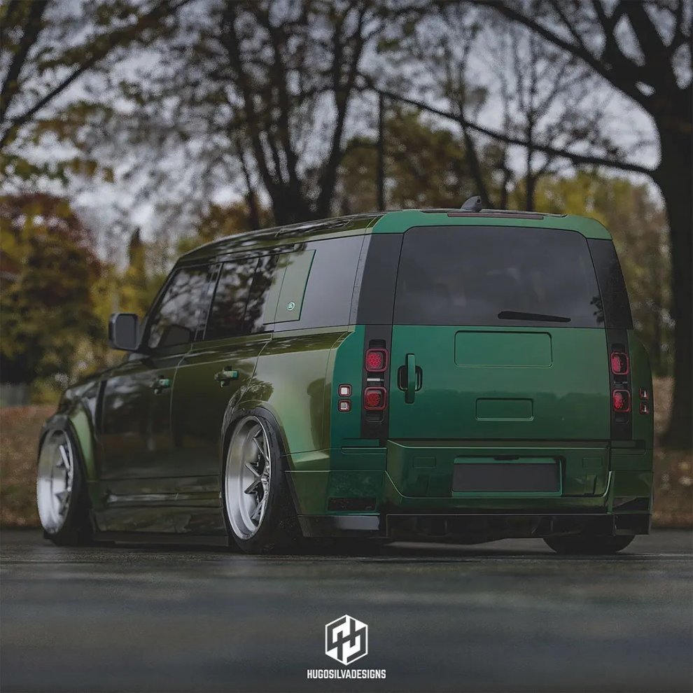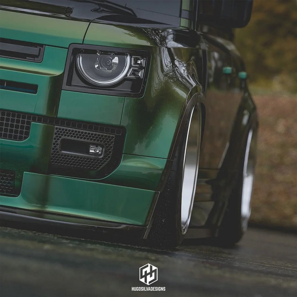 Но пока большинство владельцев пытаются приподнять кузов Defender, чтобы освободить место для больших шин, диджитал-дизайнер Хьюго Сильва решил пойти противоположным путём. Ему большие колёса Defender пришлись как раз кстати. По его мнению, машине не хватает лишь небольшого отрицательного развала в сочетании с полным удалением дорожного просвета. Конечно, идеи Хьюго заслуживают уважения, но они точно не подчёркивают сильные стороны внедорожника.