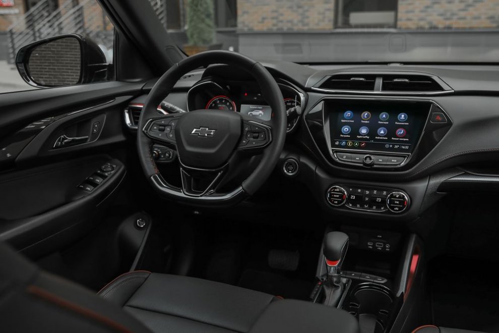 Кстати, клиренс Chevrolet Trailblazer RS – 194 мм, что на 11 мм выше, чем у версии Activ с более пухлыми Hankook Ventus S1 Evo 2 SUV 226/60 R17. Но с учётом не слишком длинных свесов и стальной защиты мотора, для лёгкого офф-роуда хватает и 183 мм. Разумеется, не стоит ждать чудес проходимости от кроссовера, у которого нет ни принудительной межосевой блокировки, ни специальных внедорожных алгоритмов вспомогательной электроники, ни ассистента спуска с холма. Всё, что можно сделать – кнопками на центральном тоннеле подключить заднюю ось или выключить систему динамической стабилизации.