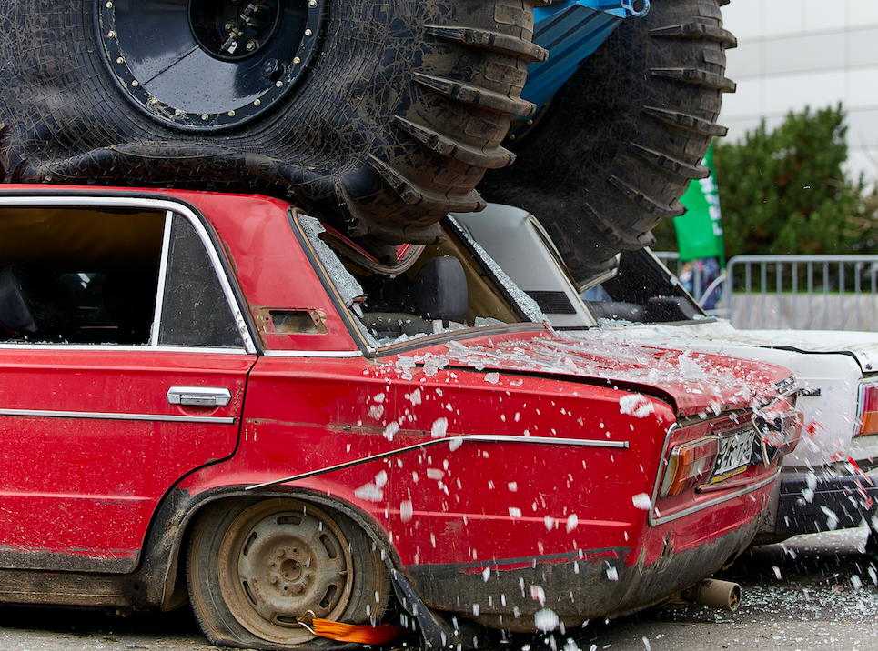 На уличной площадке вездеходы Лесник-Турист демонстрировали свои возможности в тест-драйве и даже переезжали припаркованные машины.
