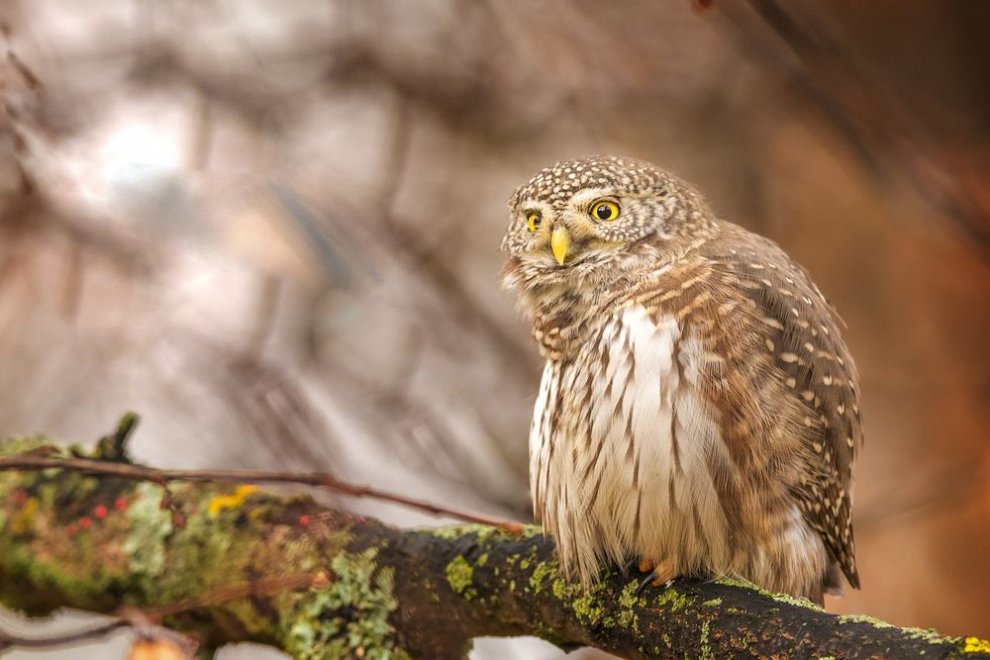 Воробьиный сычик питается мышами и мелкими птицами, поэтому улетать зимой особой надобности нет. Сычика, который сам меньше голубя, можно легко найти по истошному крику синиц, вьющихся вокруг него и предупреждающих остальных птиц о близости хищника. Слово «сыч» звукоподражательное и ассоциируется то ли со свистом, то ли с шипением этой птички. Ну а выражение «смотреть сычём» описывает огромные совиные глаза, наблюдающие за миром с нескрываемым удивлением. Сычик живёт в дуплах и их же превращает в кладовые, набивая мышками впрок. Таким образом, выжить зимой ему помогает импровизированный природный холодильник.