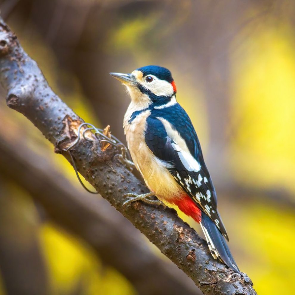 Большой пёстрый дятел (самец). Некоторые птицы приспособились добывать корм в условиях суровой зимы и никогда никуда не перелетают. Крепкий клюв вместе с уникальным строением черепа и языка позволяют дятлу не только добираться до личинок насекомых внутри промёрзших деревьев, но и легко расклёвывать еловые шишки. Зимой семена шишек составляют до 70% его рациона и, по подсчётам учёных, дают в четыре раза больше энергии, чем затраты на то, чтобы их добыть. Вот такое эффективное топливо! А в крупных городах, где много кормушек, жизнь у этих красавцев становится ещё более комфортной, хотя и не беззаботной.