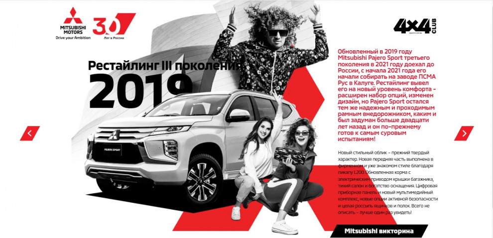 За тридцать лет в России автомобили Mitsubishi не раз доказали свою надёжность, а Mitsubishi Pajero Sport стал одним из самых популярных внедорожников в стране.