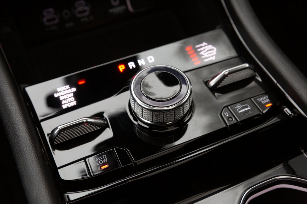 В нижней части консоли, с чёрной глянцевой отделкой Piano Black, расположен центр управления типами привода, с металлическим поворотным селектором трансмиссии, подсветкой и тактильной обратной связью. Рядом с селектором расположены переключатели высоты дорожного просвета и системы Selec-Terrain. В качестве опции доступна беспроводная зарядка на два смартфона.