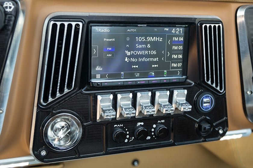 В салоне Ringbrothers искусно объединили всё лучшее из классики и современности. До предела упрощённый интерьер K5 остался неизменным, но получил несколько новых деталей. К примеру, в центре приборной панели теперь находится стереосистема Kenwood с сенсорным экраном, оснащённая не только динамиками, но и сабвуфером с усилителем. Сами приборы тоже обновили, а показания спидометра выросли до 250 км/ч.