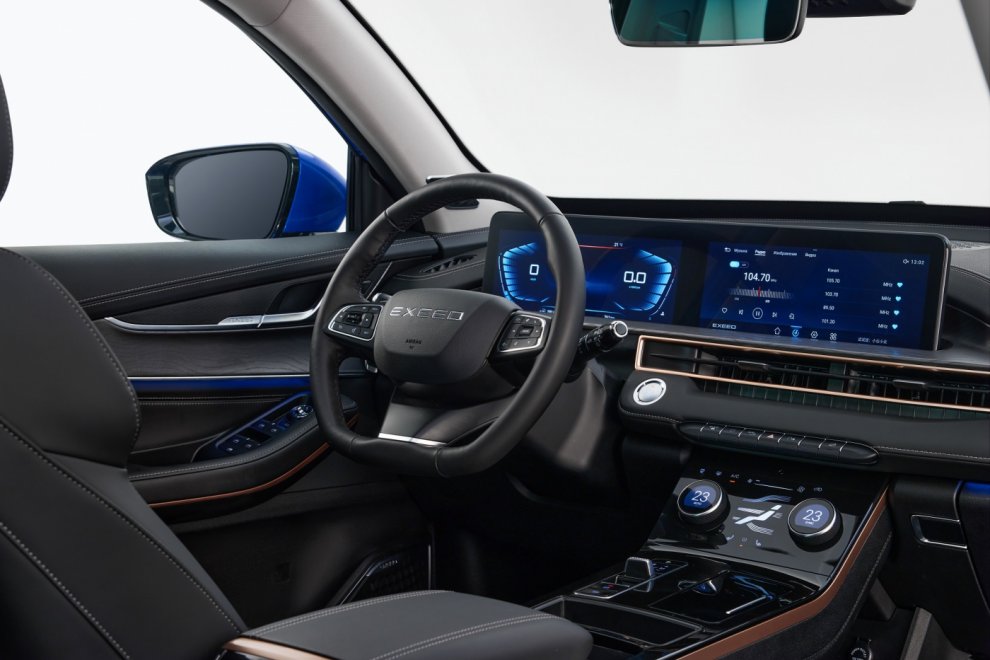 EXEED LX неплохо подготовлен к зиме. В стандартное оборудование входит обогрев лобового стекла, форсунок стеклоомывателя, внешних зеркал, руля и всех сидений. Даже панорамная крыша, занимающая 85% поверхности крыши, выполнена из теплоизоляционного 5-миллимитрового стекла. Дистанционный запуск двигателя тоже входит в стандартную комплектацию.