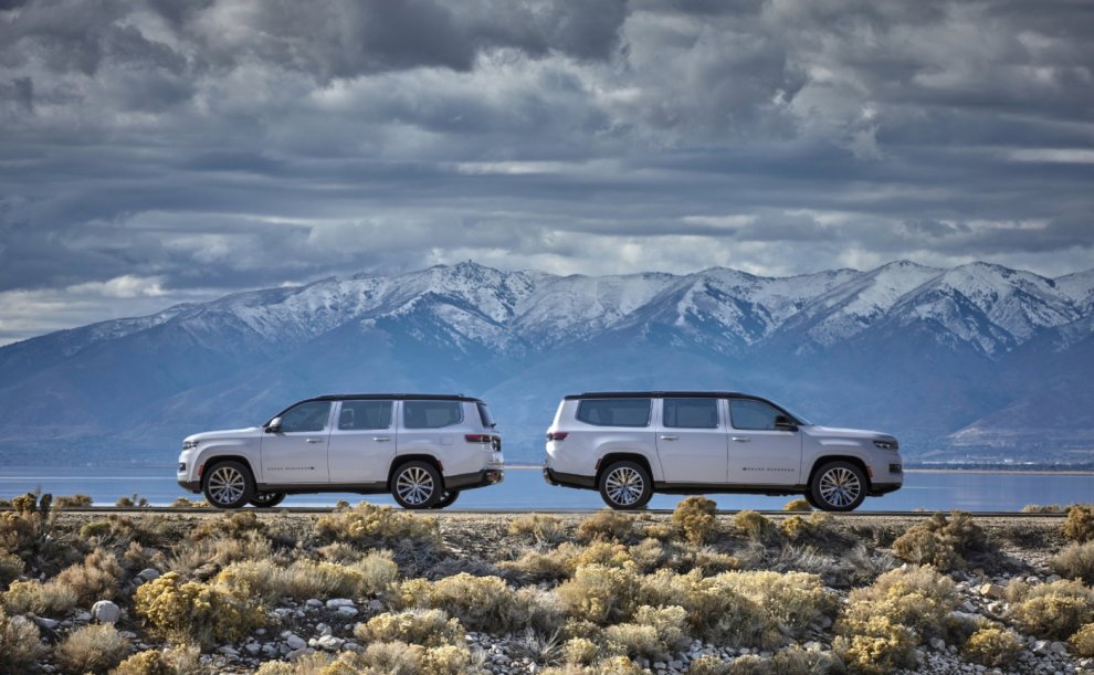 Три последние марки заслуживают того, чтобы рассмотреть их повнимательнее. Для начала, новые Jeep Wagoneer L и Grand Wagoneer L, братья и сёстры, выглядят как огромные куски металла, передвигающиеся на четырёх крошечных колёсах, в попытке понравится поклонникам полноразмерных внедорожников и предоставить альтернативу длинному как трамвайный вагон Cadillac Escalade ESV.
