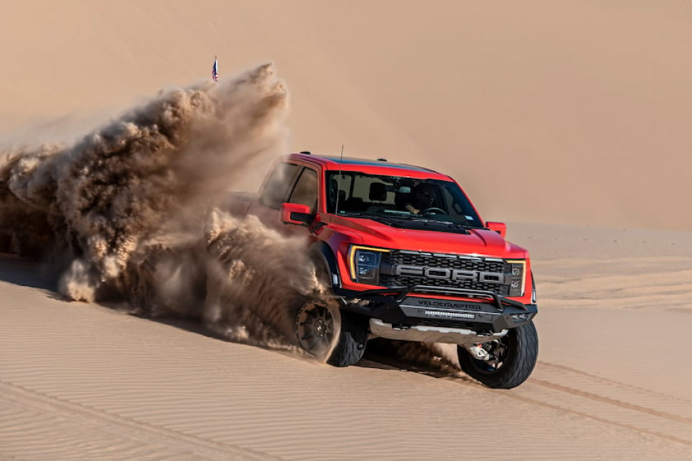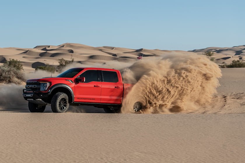 Бренд также гарантирует, что Velociraptor сможет справиться с любыми преградами, что убедительно продемонстрировал взлёт на девяностометровые дюны Глэмиса. Впрочем, имея 558 л. с. мощности и 911 Нм крутящего момента, это не так уж сложно.