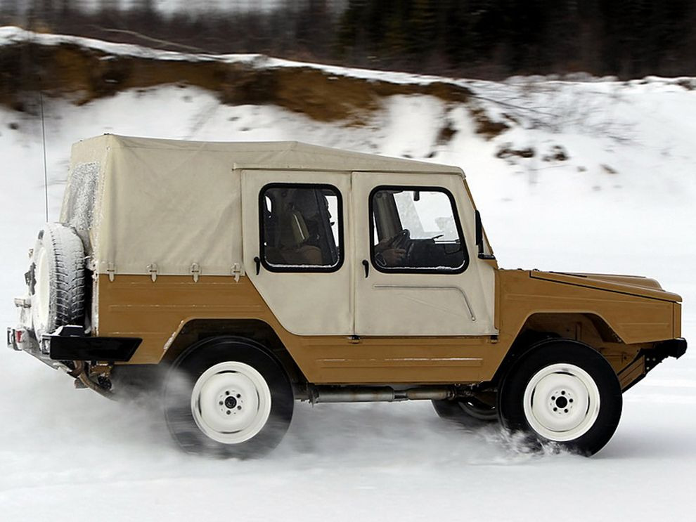 Другое дело, германский Volkswagen Iltis (1978-1988) и итальянский FIAT 1107 Nuova Campagnola (1974-1987). Первый оснащали бензиновым мотором (1.7 л, 75 л. с.) или турбодизелем (1.6 л, 70 л. с.). Второй, либо бензиновым двухлитровым мотором мощностью 80 л. с., либо дизельным (2.5 л, 72 л. с.). При этом оба отличались полностью независимой подвеской всех колёс. Вот только Volkswagen, творчески переосмыслив старый вездеход DKW Munga 1950-х годов выпуска, применил поперечные рессоры с двумя треугольными рычагами на каждое колесо. А FIAT оснастил свой вездеход чем-то вроде фальшивого Макферсон, установив вместо пружин четыре продольных торсиона – по одному на колесо. С точки зрения комфорта итальянец заметно превосходил немца. Экипаж Iltis защищал от непогоды только тент и боковые брезентовые «занавески», исполнявшие роль и дверей, и окон одновременно. Campagnola же обладала быстросъёмной стальной крышей и нормальными дверями, пусть и без карт и шумоизоляции. Кроме того, во внедорожник от FIAT можно было загрузить почти отделение солдат – трое спереди и шестеро сзади, на боковых лавках.