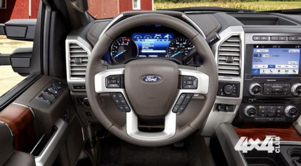 Также громадины Super Duty теперь оснащаются адаптивным рулевым управлением и таким же круиз-контролем с функцией предупреждения о столкновении, как у F-150, системой контроля «слепых зон» (включая пространство за прицепом), информационно-развлекательной системой Sync 3 с 8-дюймовым тачскрином.
