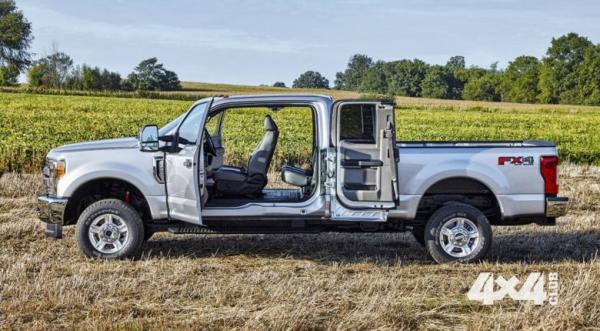 Кроме того, F-250 и F-350 получили опции, которых нет у конкурентов. Среди них, например, полностью светодиодная светотехника, включая передние и задние фары, а также подсветка грузового отсека. Задний грузовой борт теперь откидывается дистанционно, изнутри кабины можно следить за давлением в шинах и поведением прицепа (для этого на него устанавливается специальная камера — одна из семи доступных водителю).
