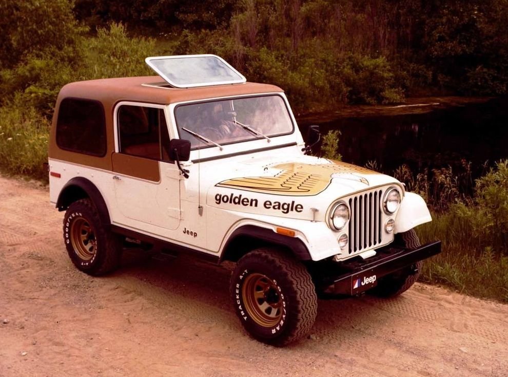 Маркетологи Jeep говорили: «У Pontiac Firebird есть «кричащая курица», а у CJ-7 должен быть «золотой орёл»». И в 1977 году бренд предложил покупателям версию Golden Eagle с пятилитровым V8, большой яркой наклейкой на капоте, и надписью «Золотой Орёл» под ней. Первоначально версия предлагалась только в коричневом Oakleaf Brown, но в следующем году появились и другие цвета. Стоимость пакета составляла ровно 999 долларов. В него входили расширители колёсных арок, внедорожные фары на дуге, хромированный или чёрный анодированный передний бампер, задний бампер-ступенька, откидной задний борт, мягкий верх коричневого цвета Levi's, восьмидюймовые стальные диски (часто золотые) и внедорожные шины. В салоне был спортивный руль, приборная панель с тахометром и часами, а также передние ковшеобразные сиденья и задний многоместный диван, обтянутые коричневым винилом Levi's. Jeep продавал Golden Eagle до 1983 года. Это был типичный продукт конца 1970-х, предназначенный для людей, которые не возражали против большой птицы на капоте.