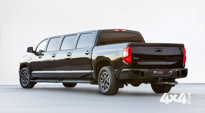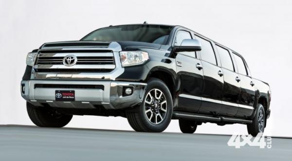 Чем только не порадует выставка SEMA. Но больше всех в этом году, пожалуй, удивила Toyota, которая представила роскошный лимузин на базе своего и без того немаленького пикапа Tundra 1794 CrewMax, удлиненного за счет колесной базы на 2,3 метра. Пикап имеет восемь дверей и может вместить до девяти человек, не считая водителя.