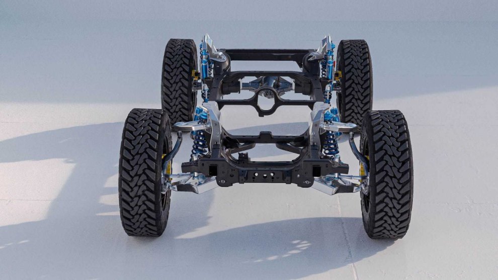 Что касается задней части, то она тоже оснащена набором койловеров King и трёхкамерными амортизаторами, которые аналогичны передним. Дальнейшему улучшению внедорожных возможностей Bronco способствует задний мост Ultimate Dana 60 (спереди стоит Ultimate Dana 44). Кроме того, было внесено немало визуальных изменений. Наиболее очевидными являются передние и задние крылья из углеродного волокна, которые почти на 18 см шире стандартных. Они могут сочетаться со стандартными 35-дюймовыми шинами, на которых и продаётся Bronco, или с 40-дюймовыми колёсами APG, хотя такой вариант уменьшает ход подвески до 36,8 сантиметров. К сожалению, компания не сообщила, сколько стоит пакет ProRunner, но активно принимает заказы на его установку.