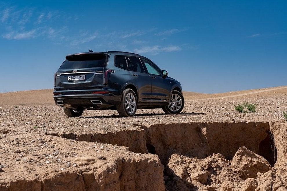 Мы ездили на XT6 в версии Sport с адаптивными амортизаторами и тремя муфтами – одна, кулачковая, отключает карданный вал, когда не задействована задняя ось, а две «мокрых» многодисковых расположены на полуосях и заведуют распределением крутящего момента отдельно на каждое из задних колёс. В принципе они могут работать как блокировка, правда, принудительно заблокировать их не получится. Всего же у ХТ6 четыре режима трансмиссии: переднеприводный «Тур» (в нём как раз отключается карданный вал) и полноприводные AWD, «Спорт» и «Бездорожье», по крайней мере именно так они обозначены в меню. Внедорожная электроника работает безукоризненно, если, конечно, нажимать правильные кнопки. Выбираем «Бездорожье», усыпляем систему динамической стабилизации (полностью она не отключается), переходим на первую передачу в ручном режиме АКП и жмём на газ. Чуть подумав, массивный кроссовер на двадцатых дисках, обутый в дорожную резину, легко переваливает через бруствер грунтовки с задранным в небо передним колесом, а затем карабкается вверх по склону. Диагональное вывешивание ему нипочём, тяги в нижнем диапазоне оборотов хватает, однако записать ХТ6 в вездеходы вряд ли получится — длинная база, низкие свесы, «юбка» переднего бампера метёт землю, а клиренс составляет 181 мм. При этом, несмотря на своё асфальтовое предназначение, ХТ6, если надо, может легко прохватить по грунтовке. В комплектации Sport и Premium Luxury с пакетом Platinum стоит адаптивная подвеска с непрерывным управлением демпфированием. Амортизаторы не допускают сильной раскачки на волнах и глубоких поперечных кренов. Немного утомляет подробная трансляция микрорельефа, но энергоёмкость подвески отличная, и её настройки вполне приемлемы. Например, на Lexus RX350L нас бы уже давно укачало.