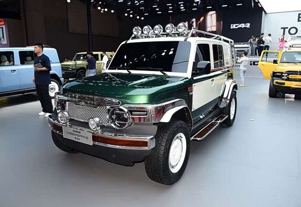 Внешне iCar V23 напоминает гибрид ретро-внедорожника и современного кроссовера. Кремово-белый кузов с зелёными акцентами, большая решётка радиатора и пять прожекторов на крыше отсылают к легендарным моделям прошлого. При этом габариты остались компактными: длина 4 220 мм, ширина 1 915 мм, высота 1 845 мм. Дорожный просвет в полноприводной версии около 210 мм. Задняя часть получила необычный элемент – смещённый вправо багажный отсек, который разработчики назвали «рюкзаком». Это решение освободило место для номерного знака, а сама дверь открывается вбок. Интерьер ретро-версии пока не раскрывают, но вероятно он сохранит черты стандартного V23: 15,4-дюймовый сенсорный экран, голосовое управление и мощная мультимедийная система.