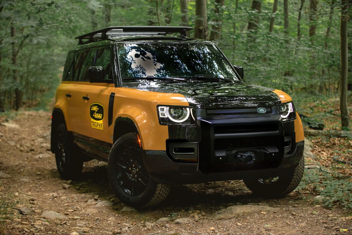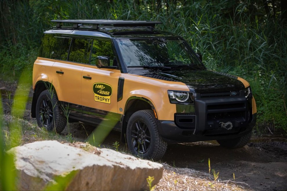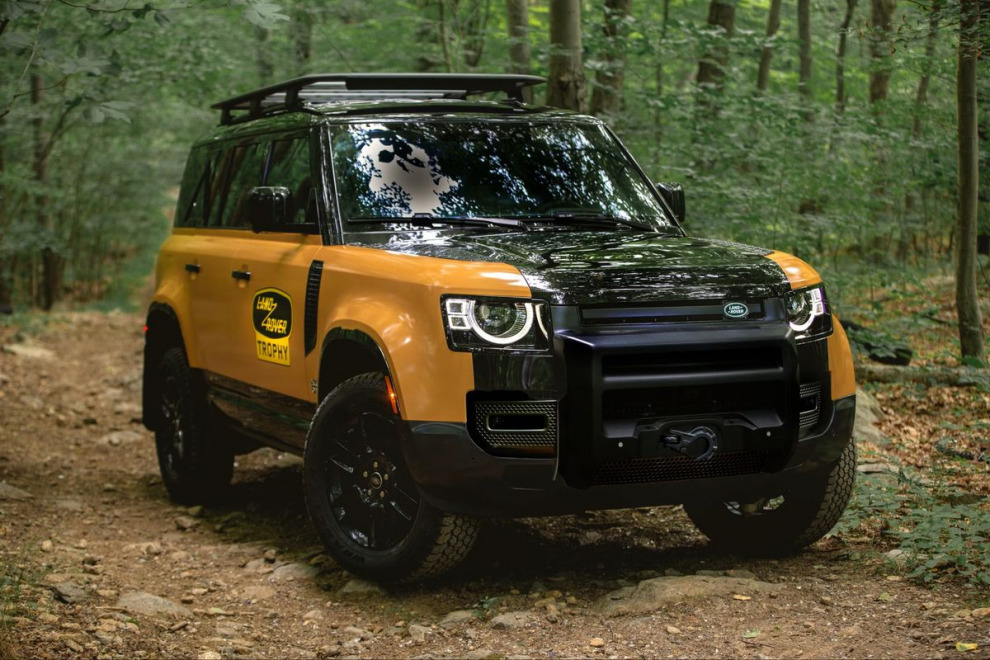Trophy Edition выделяется характерными элементами дизайна: многослойной решёткой радиатора, фарами в стиле «круг в квадрате» и защитным обвесом. В основе версии – Defender 110 с 20-дюймовыми колёсами. Доступны два эксклюзивных цвета: ярко-жёлтый (Deep Sandglow) и классический зелёный (Keswick Green), которые контрастируют с чёрными элементами – капотом, арками колёс и крышей. Дополнительно можно заказать так называемый Trophy Pack, включающий багажник на крыше, внешний кофр, шноркель, лестницу и жёсткие брызговики.