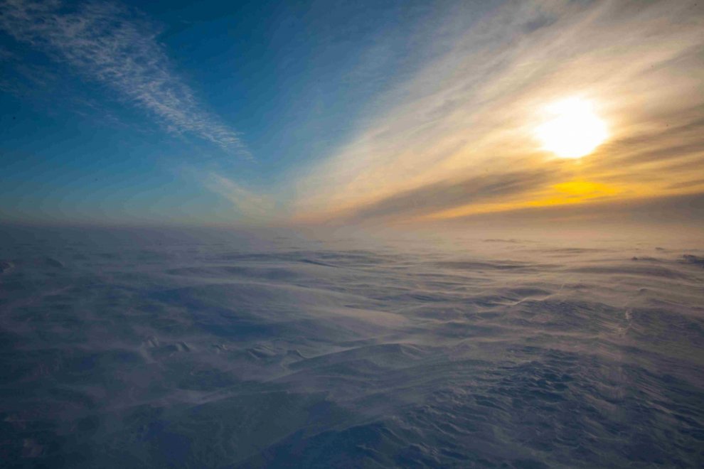По ходу движения учимся разбираться в снеге, на глаз определять его структуру и плотность, понимать, под каким берегом лучше ехать. Вся учёба, как водится, на своих ошибках. Засел, раскачался, и больше в пышный, искрящийся на солнышке снег не едешь, выбирая места потемнее, где он успел слежаться, или высматриваешь заструги – снежные волны, как бы застывшие в движении. Так мы дошли до Енисея, и теперь для ориентировки у нас появился след, правда, от ледокола. А на встречу и сам ледокол.