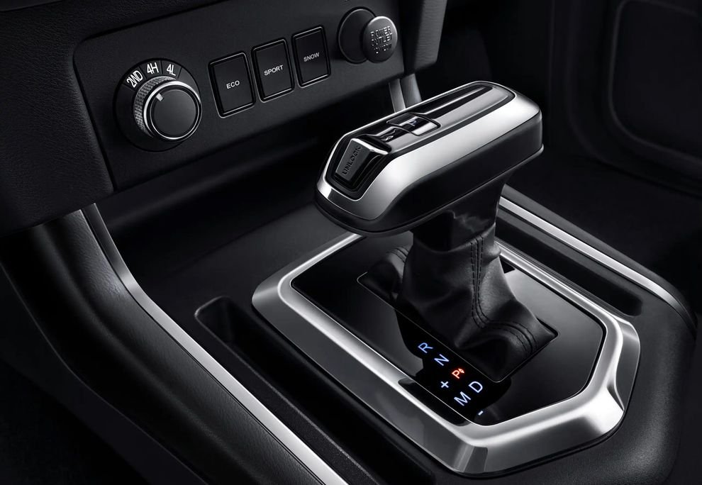 Поведение пикапа в верхней комплектации Luxury, оснащённой 8-ступенчатым автоматом ZF, полностью идентично механике. При этом педаль газа у него соображает даже медленнее, но зато «автоматический» Dongfeng DF6 позволяет выбрать из трёх режимов движения: snow, eco и sport. Честно говоря, спортивному режиму нет альтернативы. Чтобы хоть как-то взбодрить электронику, включать его нужно вместе с зажиганием. В «спорте» и передачи будут перекидываться гораздо реже, и торможение двигателем на крутых спусках станет таким активным, что вам захочется перейти в «мануал», чтобы мозги пикапа немного отпустило. Однако в целом, при спортивных настройках АКП ведёт себя адекватно и в городе, и на трассе – переключения очень плавные, без рывков при ускорении, и суеты в пробочном режиме.