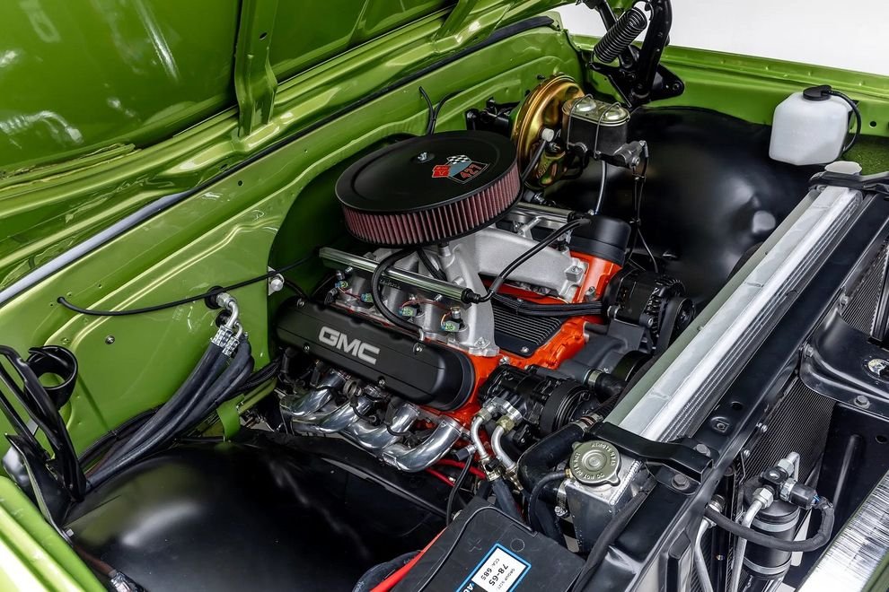 Базовый GMC Jimmy 1972 года выпуска нашёл своего нынешнего владельца в 2021 году, и тут же оказался на подъёмнике. Проект предусматривал полную разборку, восстановление кузова и ходовой, обновление интерьера, доработку подвески и установку нового сердца – снятого с производства 7.0-литрового двигателя LS7 V8, с топливной системой Holley Terminator X EFI.
