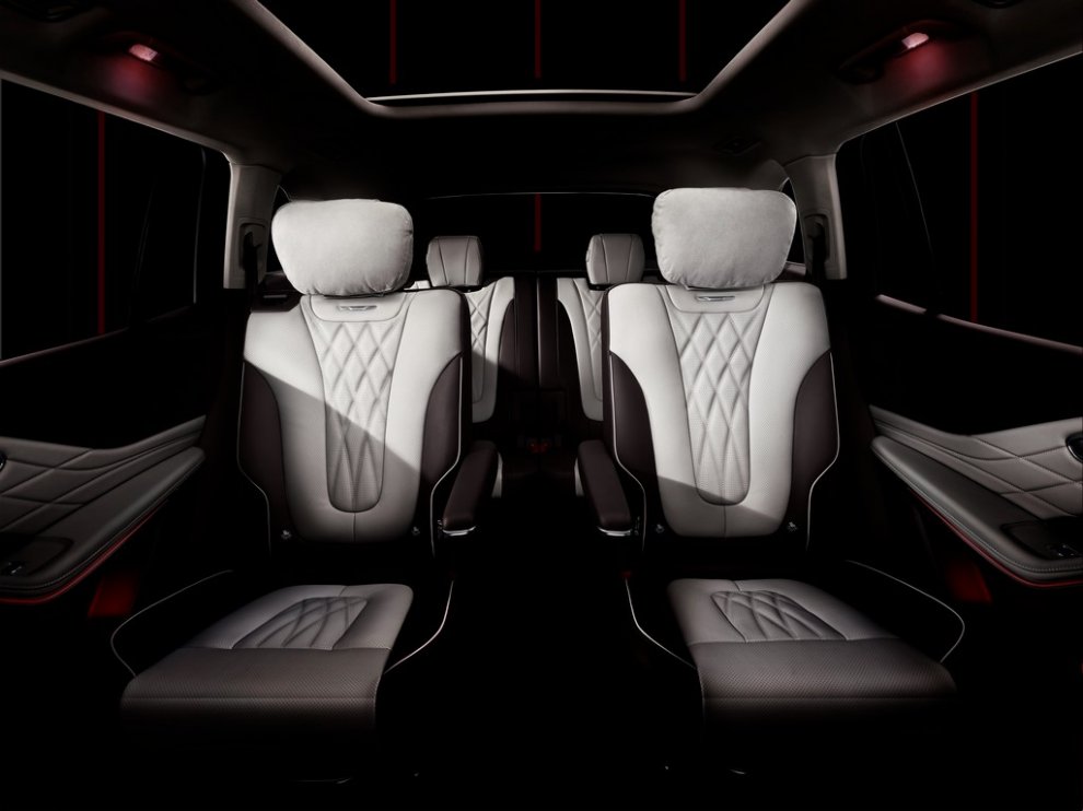 Фирменная решётка радиатора с хромированными ламелями и светодиодные фары с вертикальными ходовыми огнями, стилизованными под флагштоки – узнаваемая фамильная стилистика бренда. При разблокировании автомобиля включается световая анимация, усиливая премиальное впечатление. Задняя часть кузова, с выразительными фонарями и скульптурными линиями, придаёт ему визуальной устойчивости.