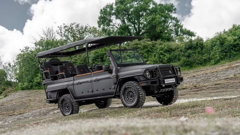 В результате, теперь мы можем оценить законченный продукт – Ineos Grenadier Game Viewer от нового подразделения Ineos Kavango. Сегодня это уже не просто переделка, а целая производственная программа. Автомобиль будет поставляться в двух вариантах, с длинной и сверхдлинной (до 3,1 метра) колёсной базой, вмещающих до девяти человек. Задние ряды сидений приподняты (как всегда любили делать в Land Rover), обеспечивая всем пассажирам безупречный обзор на окрестности и их диких обитателей. Технология сборки оригинальна. Grenadier покидает завод во французском Гамбаше в виде полуфабриката – без краски, задних дверей, сидений, крыши и стёкол. Всё это добавляется уже в Ботсване, где стандартную верхнюю часть полностью срезают, монтируя усиленный каркас и тентовую крышу. На выходе получается машина исключительно коммерческого назначения: для заповедников, сафари и крупных частных владений. Ineos даже адаптирует гарантийные условия и готовит сеть местных механиков для обслуживания в удалённых районах.