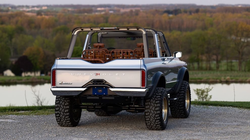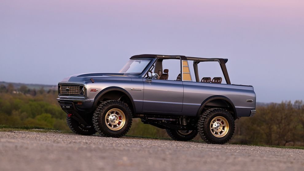 Исторический внешний вид внедорожника разумеется постарались сохранить, добавив отдельные элементы, такие как расширителей крыльев, чтобы немного прикрыть огромные колёса, и капота, сделанного из углеродного волокна для снижения веса. Кстати, окрашен Blazer в голубой цвет Bashful Blue.