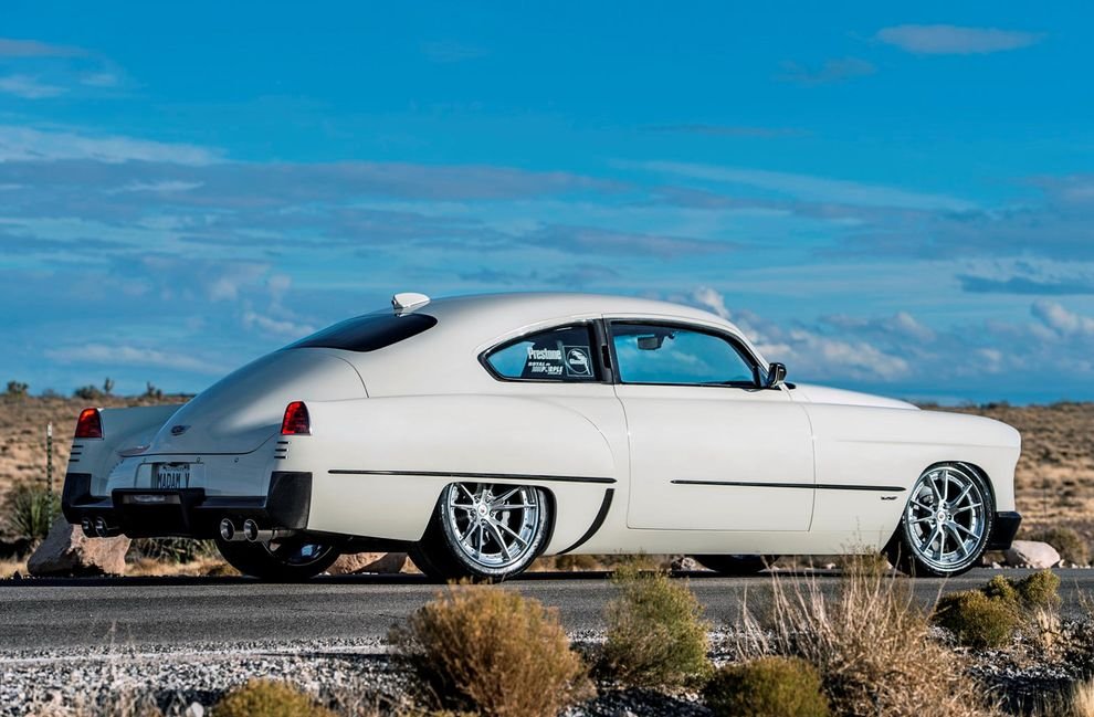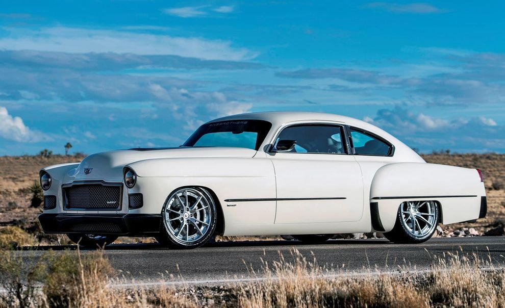 Перед вами, по сути, современный Cadillac ATS-V с переделанным кузовом Cadillac 1948 года. Это полная противоположность рестомоду, потому что под капотом стоит обычный 3.6-литровый V6 с турбонаддувом, да и интерьер остался совершенно стандартным. В результате получился хот-род Caddy, середины прошлого века, оснащённый шасси с электронным управлением, системой контроля тяги, восьмиступенчатой автоматической коробкой передач и Track-режимом.