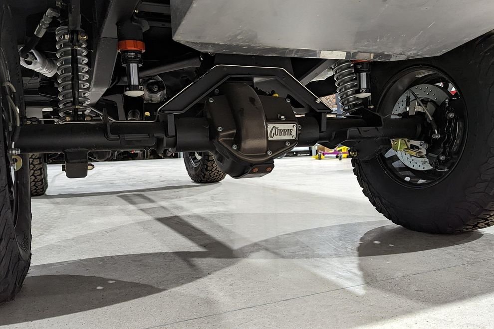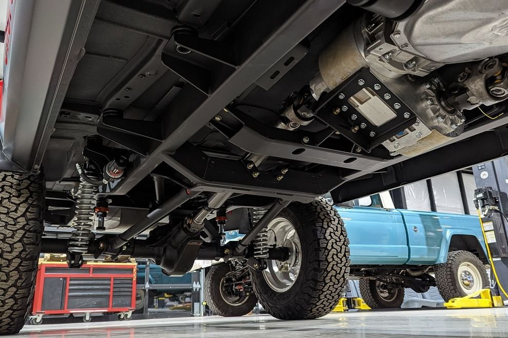При создании своих проектов компания не жалеет ни времени, ни средств, поэтому приступая к работе с автомобилем пятидесятилетней давности с него снимают и переделывают буквально всё. Так, впечатляющая мощность HEMI, передаётся на все четыре колеса через шестиступенчатую механическую коробку Tremec и раздаточную коробку Advance Adapters Atlas-II. А чтобы любая дорога выглядела лёгкой прогулкой, на Cherokee установили легендарные мосты Dana (44 спереди и 60 сзади). Во внедорожнике используются шестипоршневые тормозные суппорта Baer, с системой помощи при торможении Hydratech Hydroboost, чтобы гарантированно остановить этого тяжёлого зверя, в то время как усилитель руля Borgeson облегчает управление. Эта машина выдержит любые ухабы, благодаря пружинам Eibach и амортизаторам знаменитой Fox Racing.