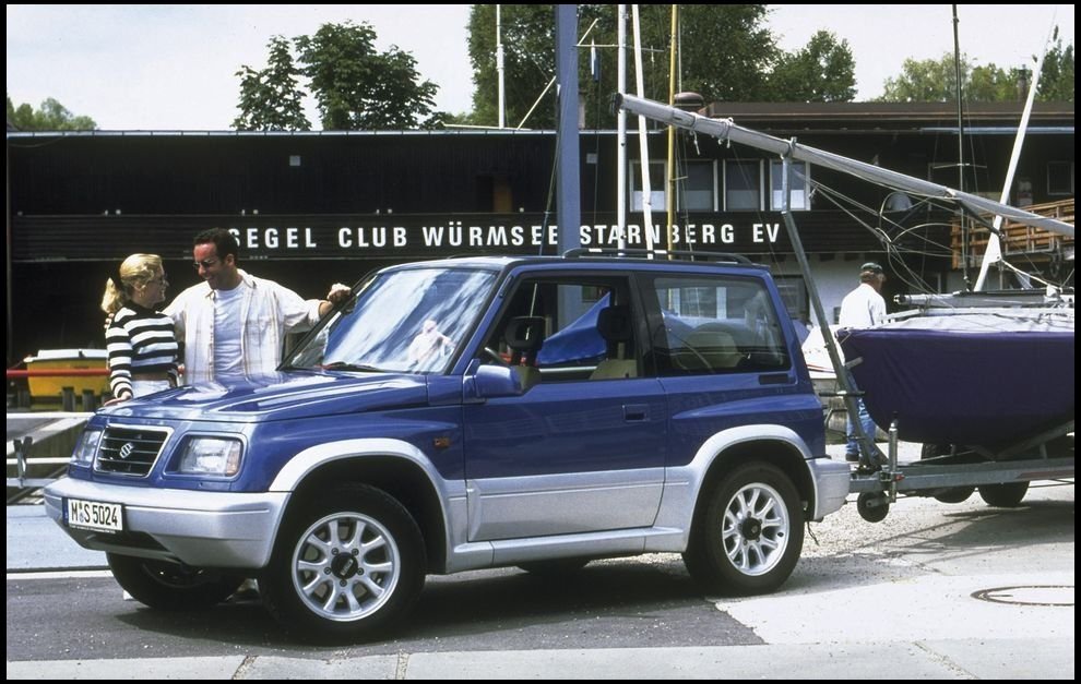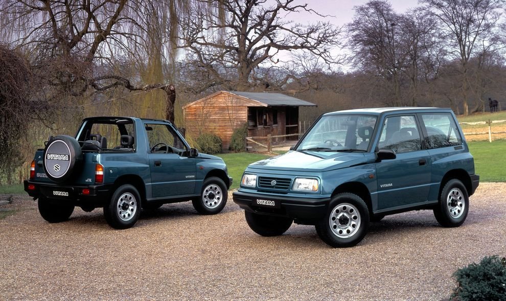Успехи малыша Jimny побудили Suzuki выпустить нечто более крупное и комфортабельное, с лучшей управляемостью. Так появилась вторая легендарная модель компании – Vitara. Она дебютировала на японском рынке в 1988 году под именем Escudo, а в США вышла с небольшой задержкой, в 1989-м модельном, как Sidekick. Кроме того, внедорожник Suzuki включили в свои линейки General Motors (об этом немного позже), а спустя некоторое время и Mazda. А ещё в 1988-1995 годах Vitara выпускалась испанской фирмой Santana (модель 300) и индийской Maruti. Так что по количеству клонов и разнообразию названий Vitara шла ноздря в ноздрю с Jimny. Первая Vitara стала осторожным шагом на территорию ещё не существовавшего рынка кроссоверов. Формально это был настоящий внедорожник с кузовом на мощной раме, при этом передняя независимая подвеска представляла собой эдакий разнесённый в пространстве Макферсон, конструкцию которого явно подсмотрели у Ford Mustang и Mercedes-Benz 190E. Её особенностью стали пружина и амортизатор, устанавливаемые не единым блоком, а по отдельности. Соответственно, нагрузки распределялись равномернее, что уменьшало вероятность образования трещин в местах крепления амортизаторов. Сзади стояла зависимая рычажно-пружинная подвеска. Интересно, что рулевое управление было не реечным, а с традиционным редуктором типа «винт-шариковая гайка». Тормоза – дисковые спереди и барабанные сзади.