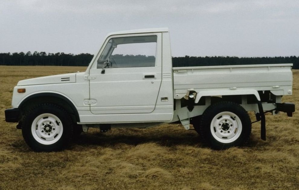 Вскоре была выпущена четырёхтактная модификация SJ 40, она же SJ 410, она же Jimny 1000. А в США и ФРГ новый Suzuki стал называться Samurai. Но это ещё не всё! Машина продавалась на разных рынках как Suzuki 4x4, Suzuki Caribbean, Suzuki Katana, Suzuki Potohar, Suzuki Santana и Suzuki Sierra. В Латинской Америке она называлась Chevrolet Samurai, в Австралии – Holden Drover, а в Индии наладили лицензионное производство Maruti Gypsy. Размеры SJ 40 были: длина – 3 555 мм, ширина – 1 460 мм, а дорожный просвет – неожиданные для такого малыша 240 мм. Модельный ряд состоял из открытой версии, короткого универсала, пикапа, бортового мини-грузовика и универсала с удлинённой базой (2 375 мм). Основным стал четырёхцилиндровый мотор объёмом 970 см3 и мощностью 45 л. с. (для США – 52 л. с.), а скорость достигла 112 км/ч.