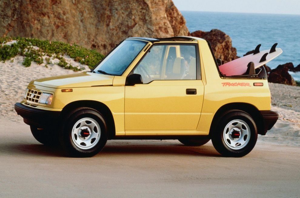 Для лучшего продвижения своих внедорожников Suzuki организовала производство Vitara на совместных предприятиях General Motors в США и Канаде, под синтетической маркой Geo. Машина получила некоторые изменения в дизайне (другую радиаторную решётку и шильдик), а также собственное имя – Tracker. Первые партии выпускались в Японии примерно до 1991 года, с постепенной локализацией. Американские и канадские версии в топовом исполнении отличались наличием трёхступенчатой автоматической коробки передач GM Turbo-Hydramatic 180, кондиционера, особых хромированных колёсных дисков Rally и отделкой салона. Кроме того, для желающих серьёзно сэкономить с 1992 года предлагался переднеприводный вариант. В Канаде продавали сразу два варианта: дешёвый Chevrolet Tracker и дорогой в максимальной комплектации – GMC Tracker. В 1992 году Chevrolet стал Geo, а GMC заменили на ещё одну странную марку – Asuna, в результате чего самый дорогой канадский вариант Suzuki Vitara превратился в Asuna Sunrunner. Впрочем, прожил он с таким именем недолго, и уже в 1994-м его переименовали в Pontiac Sunrunner. В 1998 году Geo окончательно упразднили, и Tracker продавали как Chevrolet, а Sunrunner дожил до 2000 года. Причём продавался он исключительно в двухдверном варианте. Второе поколение Vitara до 2004 года носило имя Chevrolet. Его основными отличиями были оригинальная радиаторная решётка, бамперы, накладки на боковины, свои варианты окраски и комплектаций, а также всевозможные дорогие модификации, вроде спортивной ZR2, намекающей на Chevrolet Corvette ZR1. Спортивный вариант в стандарте оснащался расширенными пластиковыми накладками на колёсных арках.