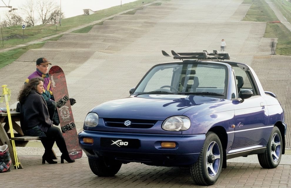 В том же 1990 году свет увидела длинная четырёхдверная Vitara, которая на некоторых рынках (например, в Германии) так и называлась – Long. В том же 1990-м был предложен 100-сильный 1.6-литровый мотор с четырьмя клапанами на цилиндр. Так что теперь самый тихоходный вариант развивал 140 км/ч, а самый быстрый – 152. В конце 1994 года по просьбам американцев появился двухлитровый V6 мощностью 136 л. с., с которым вездеход приобрёл вполне приличную по тем временам динамику – 12,5 секунд до сотни, с механической КП и максимальной скоростью 160 км/ч. Для других рынков выпустили модификацию с 2.0-литровым турбодизелем (76 л. с.), правда своего дизеля у Suzuki не было и пришлось взять его «по бартеру» у Mazda, которая, на отдельных рынках, стала продавать Vitara под названием Proceed Levante (1995–1997). У шестицилиндровых моделей была особая решётка радиатора с хромированным кантом и расширенная колёсная база, из-за чего расширители колёсных арок шли уже в базовой комплектации (в отличие от четырёхцилиндровых, где они или ставились за доплату, или в составе лимитированных и дорогих версий). В 1996-1998 годах у Vitara появились четырёхцилиндровый 2.0-литровый мотор мощностью 130 л.с. и парочка дизелей – атмосферный 1.9 л (68 л. с.) и турбо 2.0 л (87 л. с.). В 1996-м году Suzuki решилась на необычный эксперимент, выпустив на раме Vitara внедорожное купе-тарга Suzuki X-90, со съёмной прозрачной крышей, состоящей из двух половинок. Оно вмещало двух человек и оснащалось самым обычным багажником, как у легковушки. Дорожный просвет уменьшился до 170 мм. К сожалению, рынок прохладно принял этот экзотический автомобиль. Может быть потому, что он был недостаточно смелым по дизайну, особенно в сравнении с концептом 1987 года Suzuki RT-1, у которого мотор 1.6 л стоял за задними сиденьями. А возможно, потому что X-90 не мог похвастать впечатляющими ходовыми качествами, что при массе в 1 100 кг и моторе 1.6 л (100 л.с.) было вполне ожидаемо. Так или иначе, в 1998 году машину сняли с производства. Однако пользу этот полуконцепт всё же принёс – на нём обкатали внешность следующего поколения Vitara, получившего название Grand Vitara.