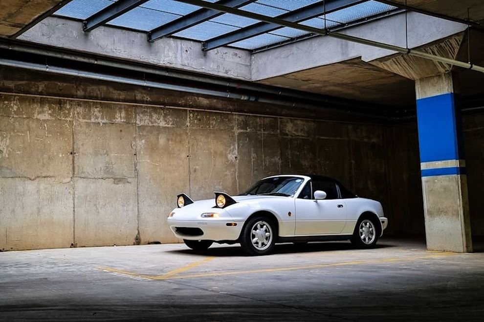 Чтобы упростить себе задачу, можно отталкиваться от высоты фар (как передних, так и задних) или линии крыльев – эти точки редко находятся на уровне глаз, если только вы не ребёнок или карлик, поэтому такой кадр позволит взглянуть на машину с необычной стороны. Особенно хорошо этот приём подходит для низких автомобилей, таких как Mazda Miata, на которые обычно смотрят с более высокой позиции. Начните с этих точек и попробуйте передвинуть камеру немного вверх или вниз, чтобы найти самый подходящий ракурс. Имейте в виду, что некоторые формы капота плохо сочетаются с нижней съёмкой: такой кадр скроет большую часть автомобиля, из-за чего он будет казаться странным и непропорциональным.