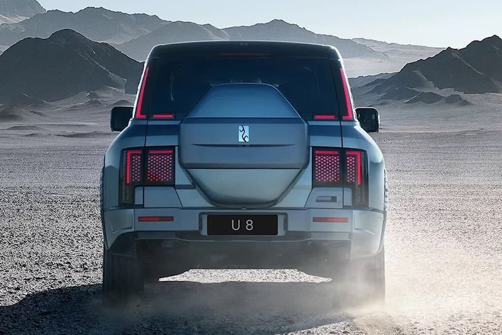 Что касается дизайна, то U8 оснащён решёткой радиатора с подсветкой, которая сливается со светодиодными фарами, забавными фонарями на крыше и почти квадратными колёсными арками, внутри которых установлены 20-дюймовые колёса. Кстати, YangWang утверждает, что со спущенной шиной U8 способен продолжать движение со скоростью до 120 км/ч, благодаря системе ран-флэт и уже упомянутому управлению крутящим моментом.