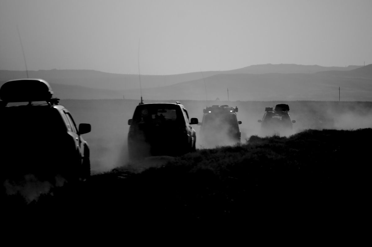 Главный бич степи – ветра. Они дуют практически всегда, изменяя лишь направления и интенсивность, которая в свою очередь колеблется от «какой приятный тёплый ветерок» до «как красиво летит по небу кухонный шатёр». Сам по себе ветер ещё не конец света, хотя прохладными вечерами он может пронизывать до костей, основная неприятность в том, что он поднимает пыль. Мелкодисперсный песок забивает глаза, складки кожи, скрипит на зубах и обнаруживается во всей еде и напитках. Эта же пыль обильно поднимается из-под колёс идущих машин, поэтому про плотное движение колонной лучше сразу забыть и растягиваться до сохранения видимости. Правда, иногда ветер играет роль добровольного помощника, унося пыль в сторону, и достаточно лишь немного смещаться в наветренную сторону, относительно впереди идущей машины, чтобы оставаться на свежем воздухе. Но как бы вы ни старались держаться подальше от пылевых шлейфов соратников, и других участников степного движения, запасные воздушные фильтры двигателя и салона нужно иметь с собой. Даже шноркель с насадкой сепаратором не станет панацеей – соты фильтров к концу маршрута будут забиты вездесущей пылью.