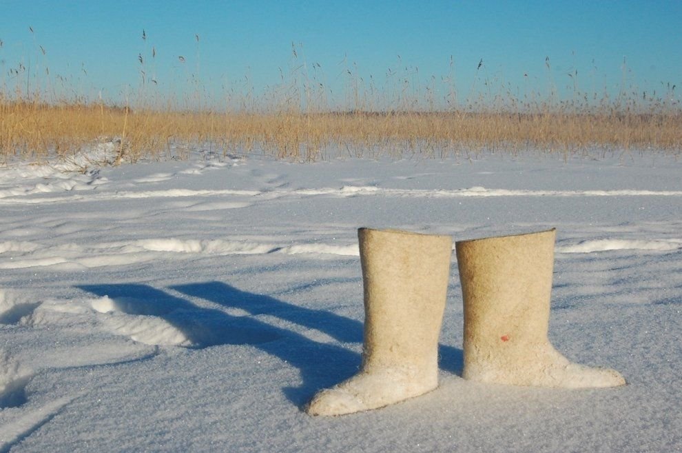 Здесь мы отойдём от уже ставшего привычным двойного комплекта, потому что вариантов обуви должно быть три: высокие ботинки, непромокаемые утеплённые бахилы и лёгкая и просторная, но тёплая и высокая обувь. Заполярье ведь наступает не сразу, до него ещё доехать надо, а это много часов за рулём. Опять же, иногда на пути попадаются города с гостиницами, музеями и кафе, куда вваливаться в унтах или валенках не комильфо. Для вышеуказанных целей вполне подойдут обычные высокие зимние ботинки. Но для Крайнего Севера они не годятся, даже если на их коробке написано «до –50 °C», потому что такая обувь рассчитана на физическую активность. То есть пока вы бегаете или быстро ходите, ногам не холодно, но если остановиться – начинаются проблемы. Поверьте, я знаю, о чём говорю. Много лет назад в дорогущих суперморозостойких ботинках я отморозил палец на ноге, когда в минус пятьдесят стоял у машины и чинил дверной замок.