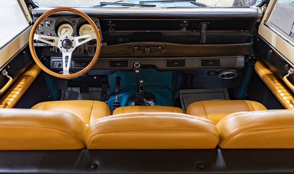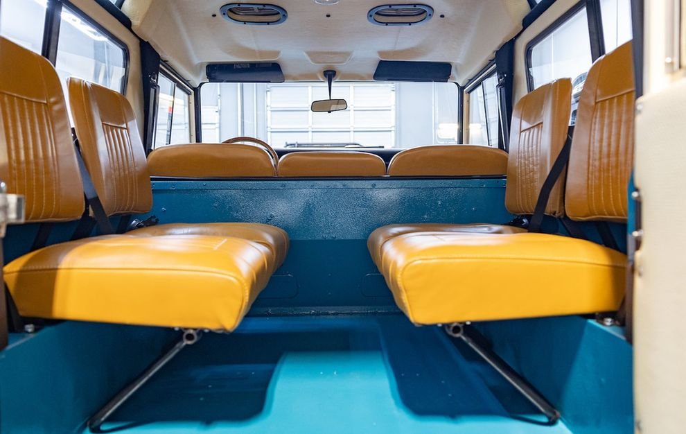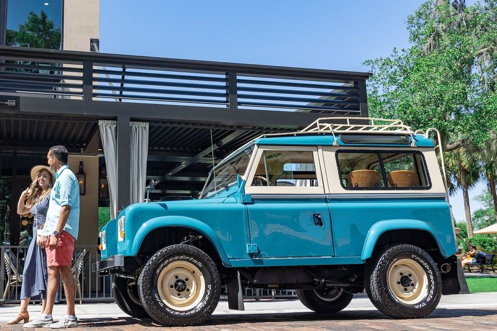 Снаружи старый Series III покрасили в «тосканский синий» (от Range Rover), дополнив его кремовой крышей и колёсными дисками, подчёркивающими классический шарм внедорожника. Оригинальный багажник на крыше и лестница 1970-х годов были отремонтированы мастерами ECD, а культовая калитка запаски сохранилась без всяких изменений.