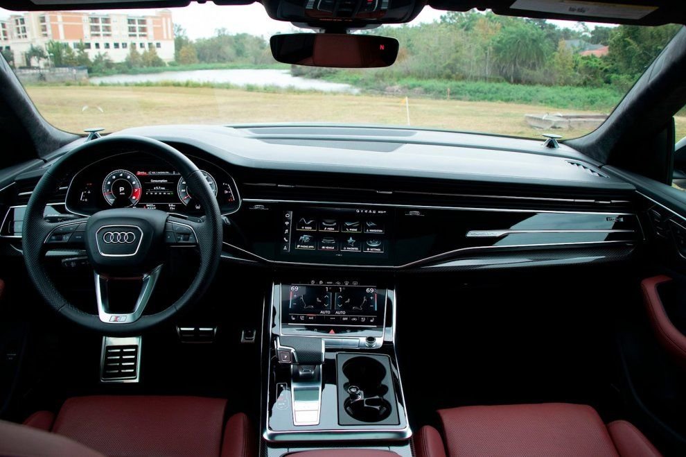 Само собой, я прекрасно понимаю, что AUDI не так престижен, как Bentley или Porsche, но это не значит, что SQ8 на чём-то экономит. Например, на интерьере. Даже её невысокая комплектация предполагает отделку из алькантары (включая дверные карты) и массаж сидений. В нашем случае, салон был обтянут яркой кожей Arras Red, которая на ощупь ничем не уступает той, что вы найдёте в Bentley. Добавьте сюда перфорированную кожу руля, углеродное волокно передней панели, премиальный металл на элементах управления, и с точки зрения интерьера SQ8 значительно превысит свою цену. А если в ней установлена премиальная аудиосистема Bang&Olufsen с 23 динамиками и мощностью 1 920 Вт (а такие есть), то в Q8 можно будет жить, не выходя из неё месяцами. При этом, она не стремится выглядеть модным кросс-купе, и значительно практичнее конкурентов. Объём багажника составляет 863 литра (1 718 литров при сложенных сиденьях), что превосходит и BMW X6, и МВ GLE Coupe. Моя единственная претензия заключается в том, что в AUDI нельзя сложить задние сиденья из багажника. Чтобы это сделать вам придётся идти ко второму ряду пешком. К счастью, это не далеко. Кстати, сдвигающиеся и складывающиеся задние сиденья предоставляют пассажирам второго ряда 102 см пространства для ног, что, как вы догадываетесь, больше, чем у BMW и Mercedes.