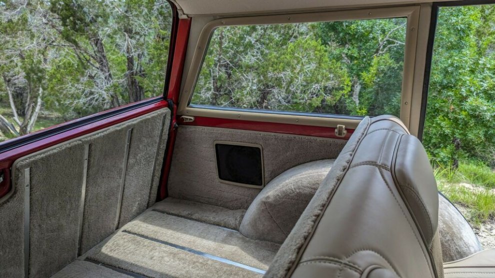 Модернизация продолжилась в салоне. В креслах заменили пружины, поролон и обивку, а затем обтянули кожей с вельветовыми вставками. Кроме того, машина получила ковровое покрытие из овчины и новую приборную панель, максимально напоминающую оригинальную. Grand Wagoneer также дооснастили современной системой климат-контроля, работающей как для передних, так и для задних пассажиров.