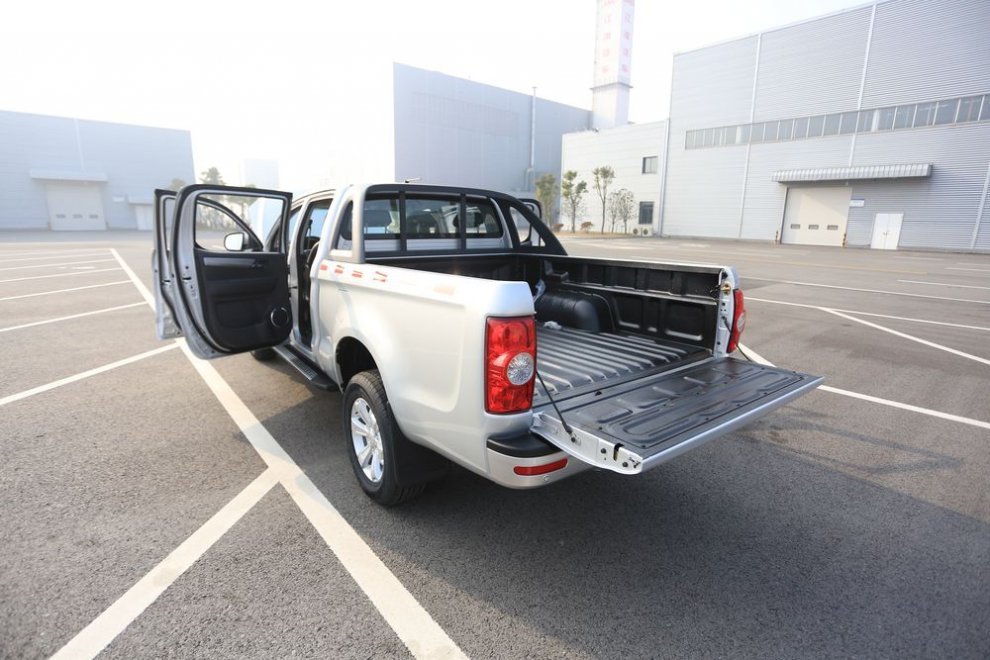 В связи с этим мы решили напомнить вам об автомобиле, который появился в РФ в 2019 году, и собирался для нашего рынка в Казахстане. В своё время, несмотря на свою простоту, а может быть благодаря ей, он произвёл на удивление хорошее впечатление. Внешне в этой рамной машине угадывалась Toyota Hilux предыдущего поколения, и это казалось вполне закономерным решением – брать за образец лучшего в классе. Дизайнерам JAC даже удалось немного освежить облик японского бестселлера – выштамповка на боковине кабины, продолженная на кузове – весьма удачный штрих. Правда, на светотехнике вдохновение иссякло. Оптика оформлена просто, а сзади и вовсе наследие эпохи Great Wall Deer – белые круги на незатейливом красном плафоне в наше время смотрятся довольно примитивно. Впрочем, это рабочий пикап и он едва ли собирался участвовать в конкурсах красоты.